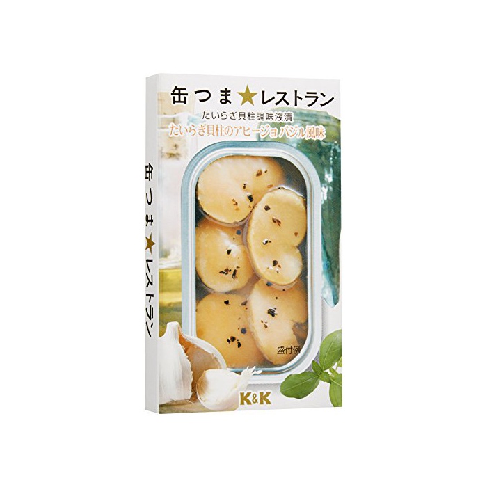 원본상품명: K&K 缶つまレストラン たいらぎ貝柱のアヒ?ジョ バジル風味 65g