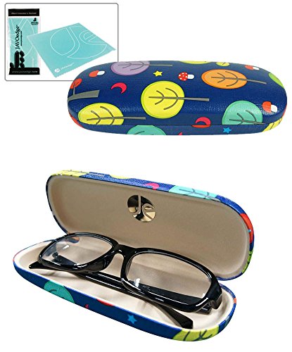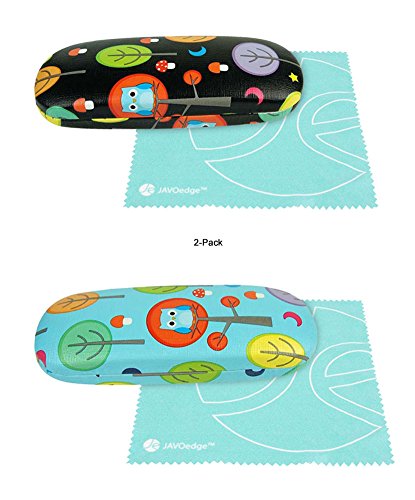 JAVOedge ( 2PACK/4 PACK) Whimsical Owls and Trees Pattern Hard Clam Shell Eyeglass Case Bonus M...