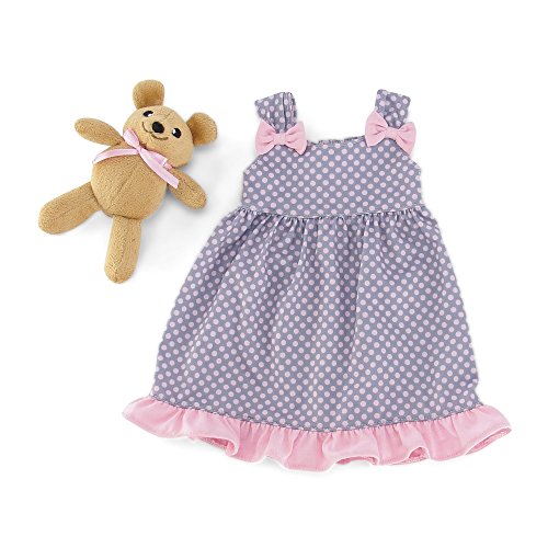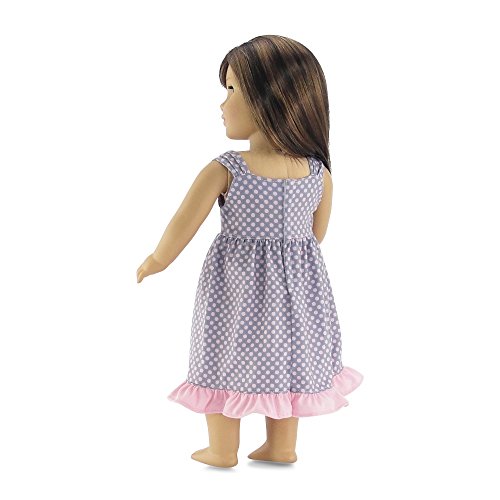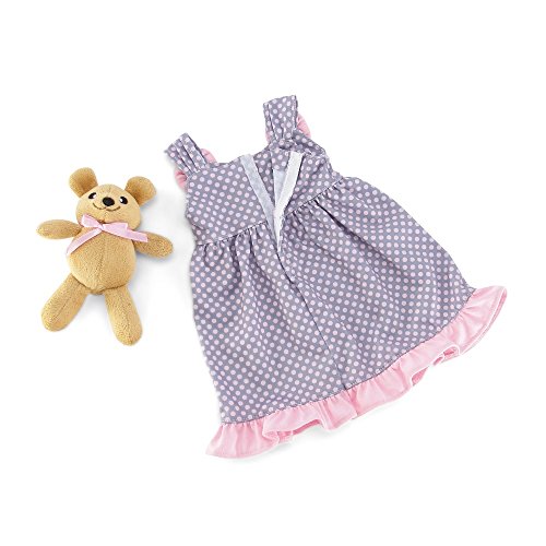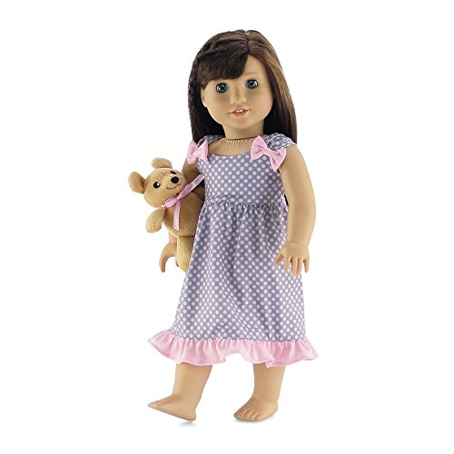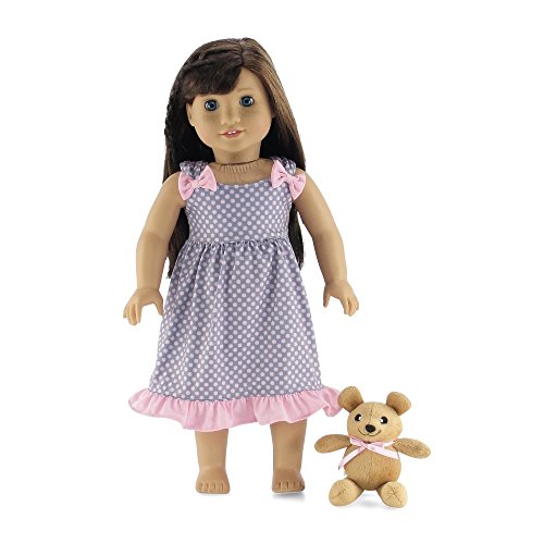 - Your doll will sleep well in this lovely, pink and grey doll nightgown with pretty ruffled trim and pink bows!