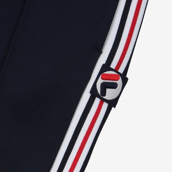 기본 플리스 팬츠로 옆 라인에 FILA 아카이브에서 가져온 7 LINE 컬러를 활용해 요꼬 포인트를 준 디자인