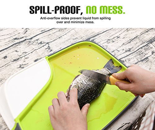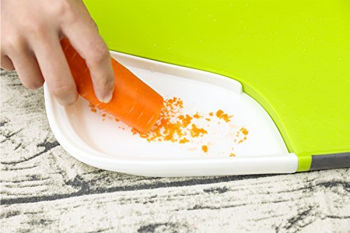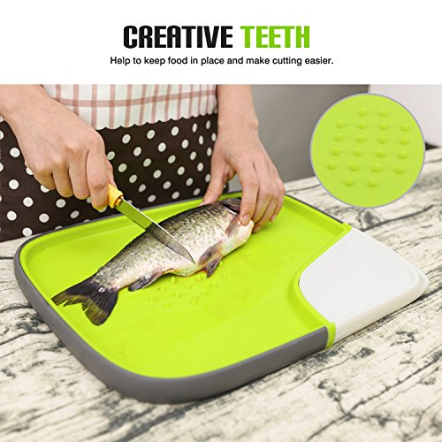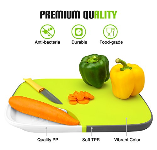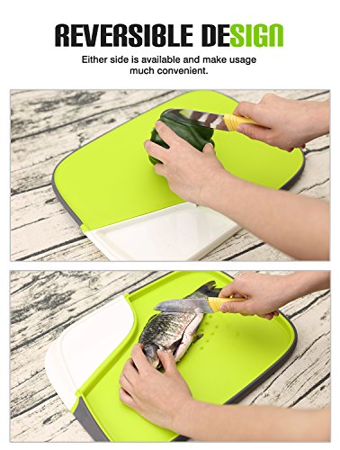 Nuovoware Cutting Board, Premium Plastic Reversible Multi-function Chopping Board Anti-Bacterial Kitchen Board with Non-Slip Frame Detachable Food Scoop for Food Prep, BPA Free, Green & White
