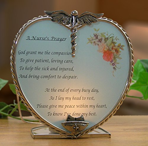 - Candle light shines through the front illuminating the verse. Touching verse printed on the front of the candle holder. Poem reads: God grant me the compassion to give patient, loving care, To help the sick and injured, And bring comfort to despair. At the end of every busy day, As I lay my head to rest, Please give me peace within my heart, To know I've done my best.