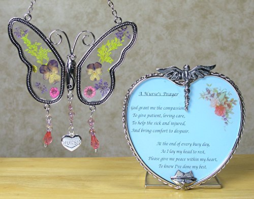 Nurse Gift Set Butterfly Suncatcher with Pressed Flower Wings & Candleholder - Gifts for Nurses - Nurse Practitioners - Nurse Gifts - Nurse Graduation Gifts