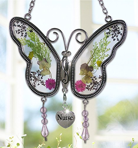 - Suncatcher has Real Flowers Pressed between Glass. Nurse Brilliantly engraved on a Hanging Heart Charm. Attractive and Uniquely Designed