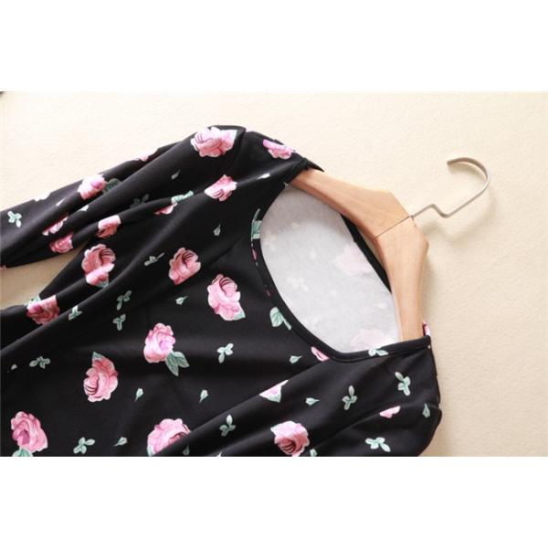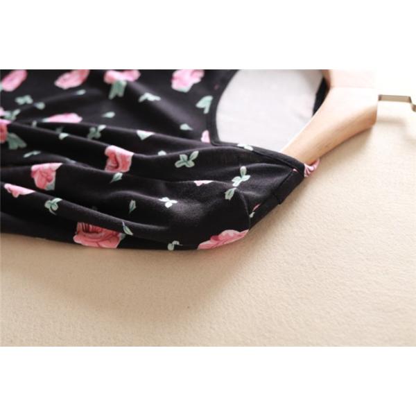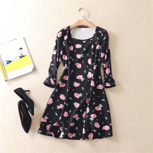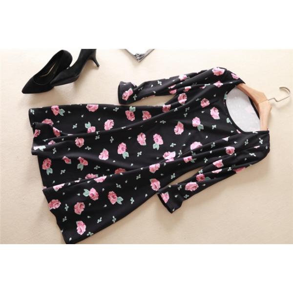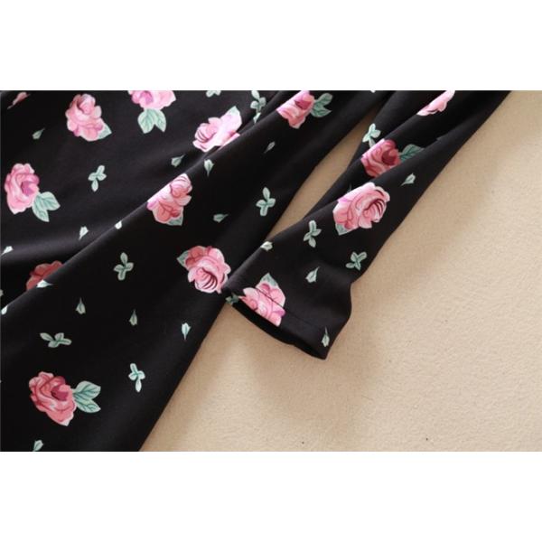 ブラックの生地に清楚感のあるピンク系フローラルプリントワンピースです♪