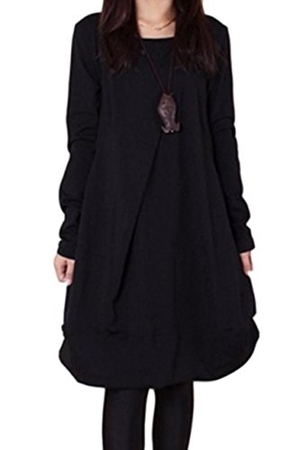 -. Title : -eriira- レディース ワンピース チュニック Aライン 無地 長袖 膝丈 ラウンドネック 体型カバー 4色展開(黒、灰、茶、カーキ) M~XXL