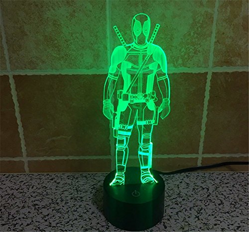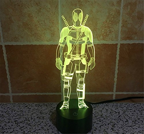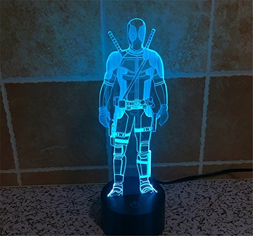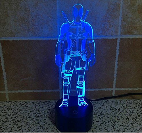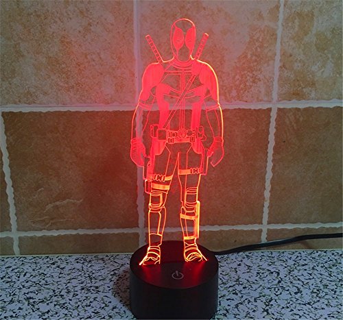 SmartEra® 3D Optical Illusion 2016 New Mutants Deadpool Panel Model Lighting Night 7 Color Change USB Touch button LED Desk Table Light Lamp
