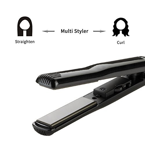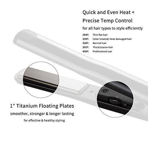 LENA Hair Straightener Curler Titanium Flat Iron with 1 inch Floating Plates, 5 Temp Adjustments, Max 450°F, Auto Shut off, PTC Heater, Travel Case & Clips