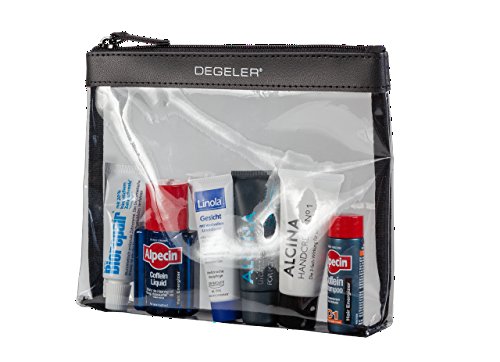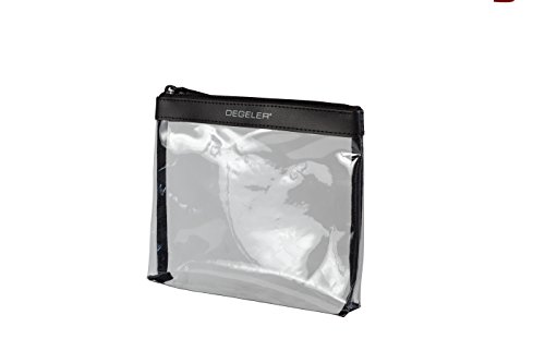 -. Brand : Degeler -. Department : unisex-adult (lage only) -. Feature : Solid craftsmanship blends butter soft butter with quality plastic to form 8" x 7" perfect travel companion. / Fits perfectly into the front pockets of DEGELER's SkyHanger or any carryon lage for quick TSA removal. / DEGELER Guarantees every workpiece purchased is of quality craftsmanship and free from defects. We offer a two year no cost repair or replacement manufacture warranty. Please see our extensive protection program for further details. / Single compartment designed for easy-carry, simple packing and quick content identification. -. ProductGroup : Apparel -. ProductTypeName : LAGE -. Size : medium -. Title : Clear Travel Toiletry Cosmetic Bag - Fashionable PVC Trim with Durable Zipper and TSA Approved by DEGELER