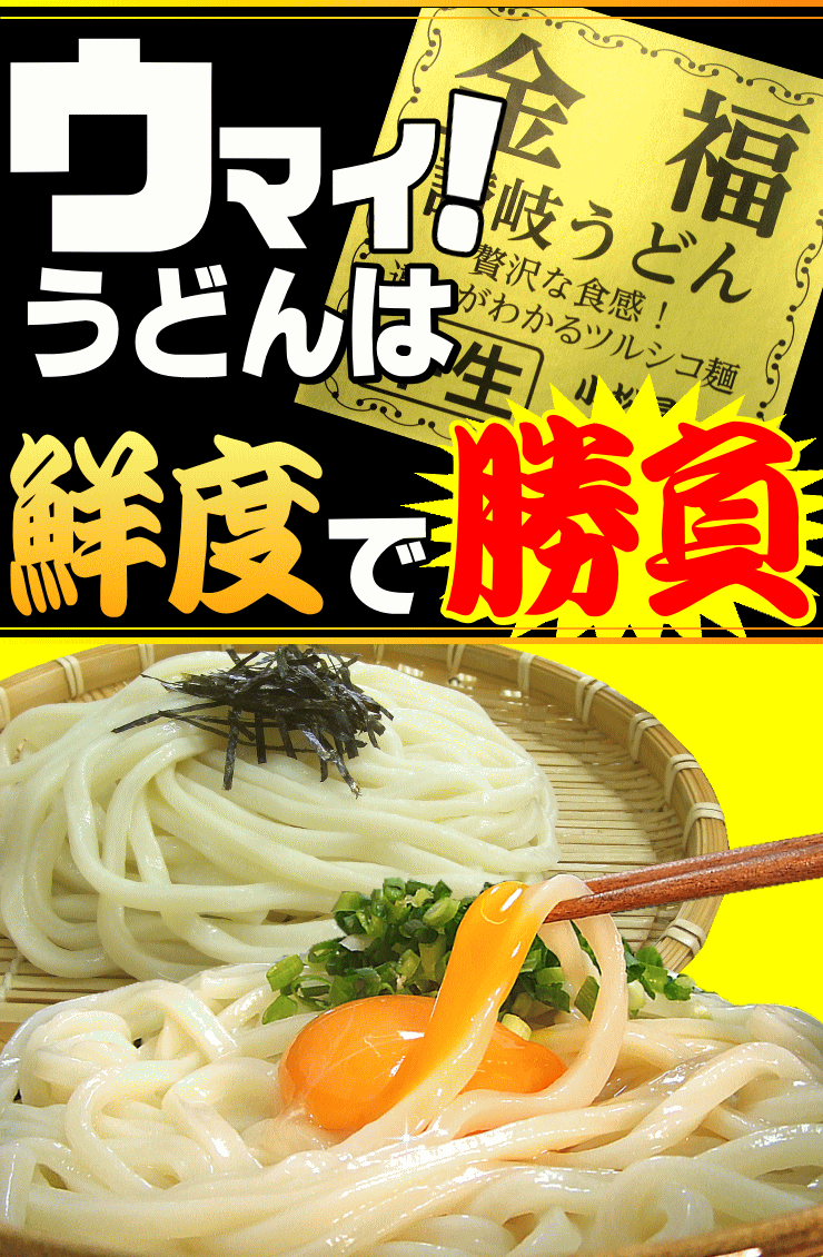 | 調理方法 | 多目のお湯でうどんを茹でた後、流水でもみ洗いをして表面のぬめり、塩分を 取り除き、器に盛ります。 |