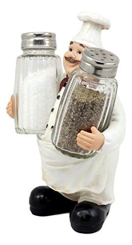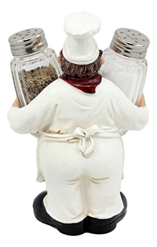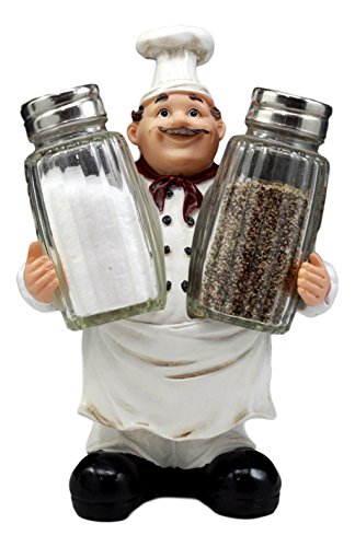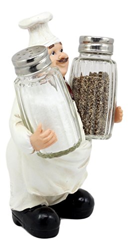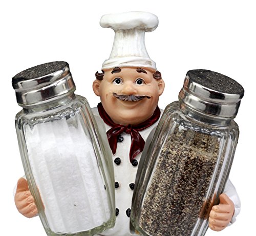 This Standing Chef Salt & Pepper Shakers Holder Figurine is made of polyresin, hand painted and polished individually. Color Tone may vary from pictures.