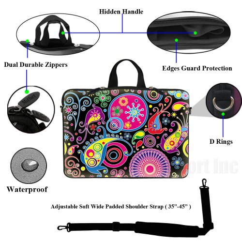 -. Binding : Personal Computers -. Brand : Meffort Inc -. Feature : Hydrophobic (water resistance) neoprene material, w. reinforced dual zipper to secure your device / High quality printing on both side of the bag with laptop edge guard / Fits laptop size up to 15.6 inch, Fits laptop dimension up to: 15.2 inch (385mm) x 11.5 inch (290mm) / Item can be use as shoulder bag w. strap in use or can be use as carrying bag (Hidden Handle) or Sleeve / Note: zipper will not close fully when hidden handle is in use, but it doesn't affect functionality -. Label : Meffort Inc -. Manufacturer : Meffort Inc -. MPN : GStrap_C -. PartNumber : GStrap_C -. ProductGroup : PC Accessory -. ProductTypeName : CARRYING_CASE_OR_BAG -. Publisher : Meffort Inc -. Studio : Meffort Inc -. Title : Meffort Inc 15 15.6 inch Neoprene Laptop Sleeve Bag Carrying Case with Hidden Handle and Adjustable Shoulder Strap