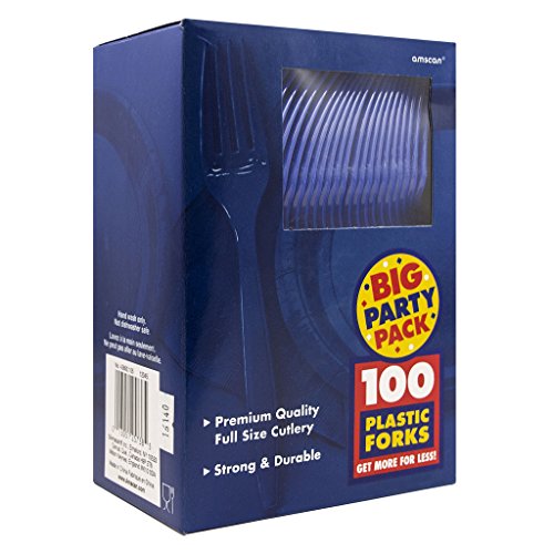 JAM Paper Big Party Pack of Premium Utensils - Plastic Forks - Blue - 100 Disposable Forks/Box