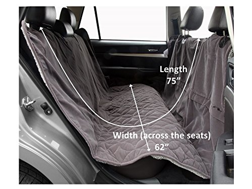 -. Feature : Durable luxury and comfort for you and your pet to keep your vehicle clean and dry / Protects the entire backseat, back of the front seat and foot wells keeping your seats and vehicle clean and dry / Reversible with tough heavy duty Microfiber on one side and thick tipped Fleece on the other side / Unzip the hammock to let people and dogs use the back seat while still protecting your vehicle / One Size fits most Adjustable straps attach to front and back seat head rests