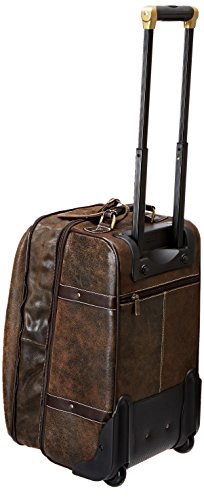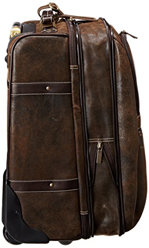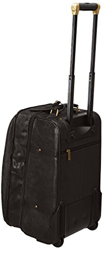 -. Feature : Antique brass hardware, / Recessed roller bearing in-line skate wheels, extra long locking handle, plush padded inner lining / Back of bag has one zippered pocket, inside elastic cross straps / Bag expands from 7.5 inch to 10 inch / Two front zipper pockets