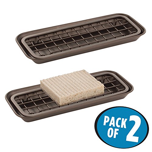 mDesign Kitchen Sink Tray for Sponges, Scrubbers, Soap - Pack of 2, Bronze