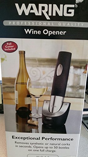 Studio : Waring Publisher : Waring Product Description The Waring Professional Quality Wine Opener is built for exceptional performance. The Waring Professional Quality Wine Opener works with synthetic or natural cork and can open up to 50 bottles on a full charge. 0