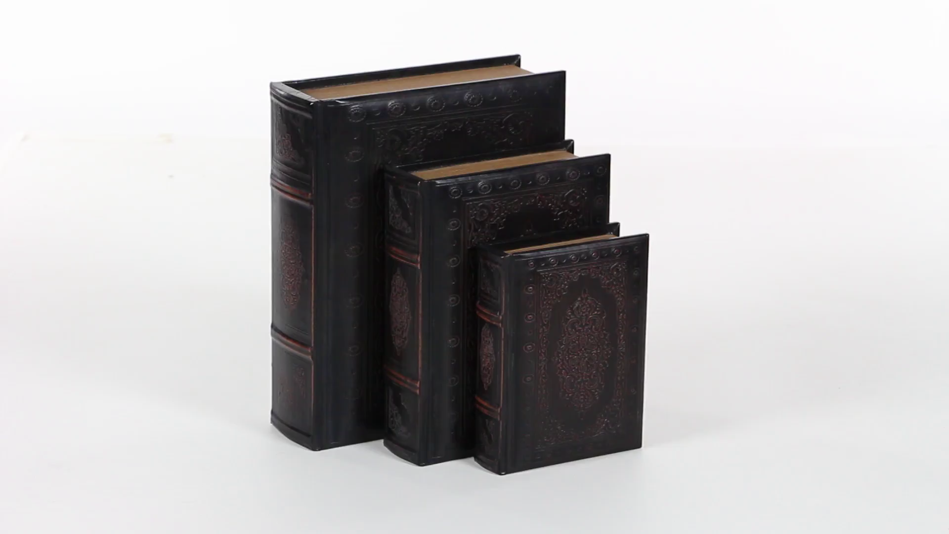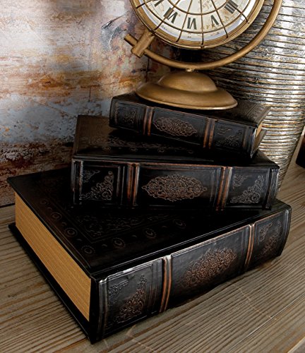 Deco 79 Smooth Leather Book Box Set with Floral Decoration