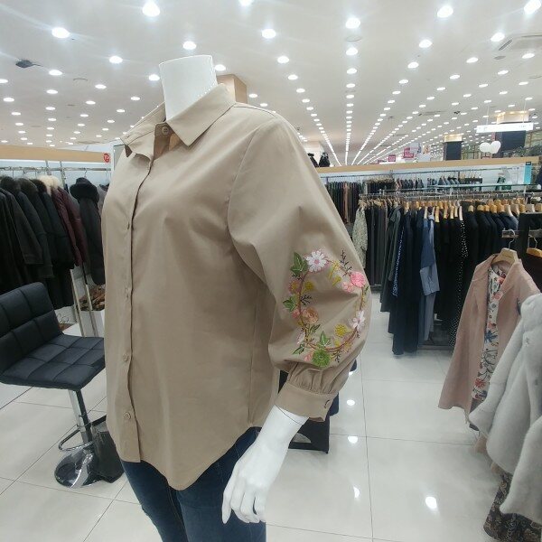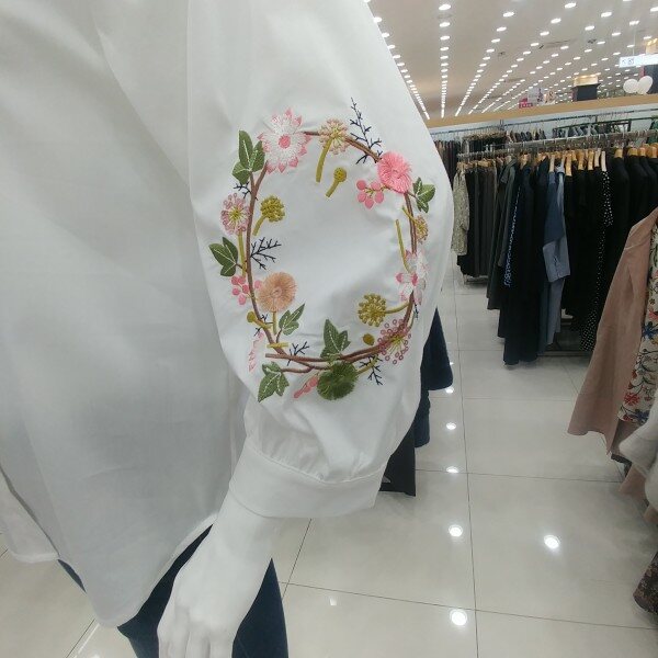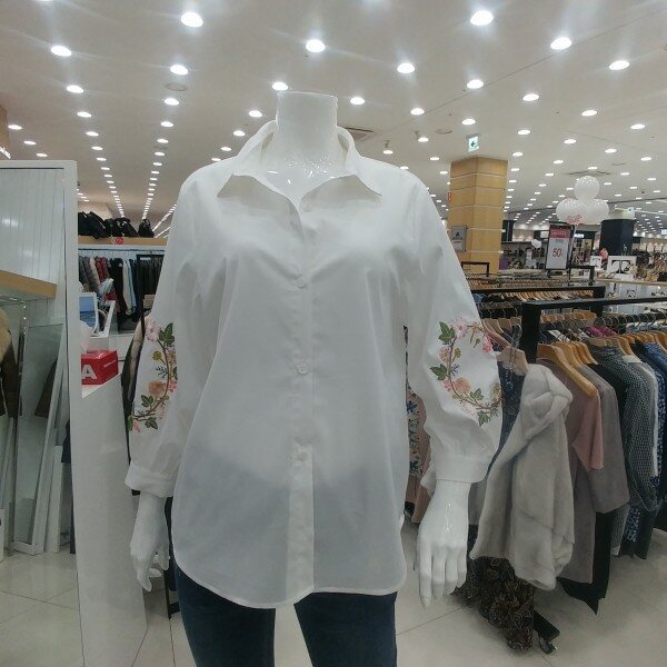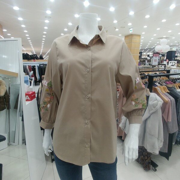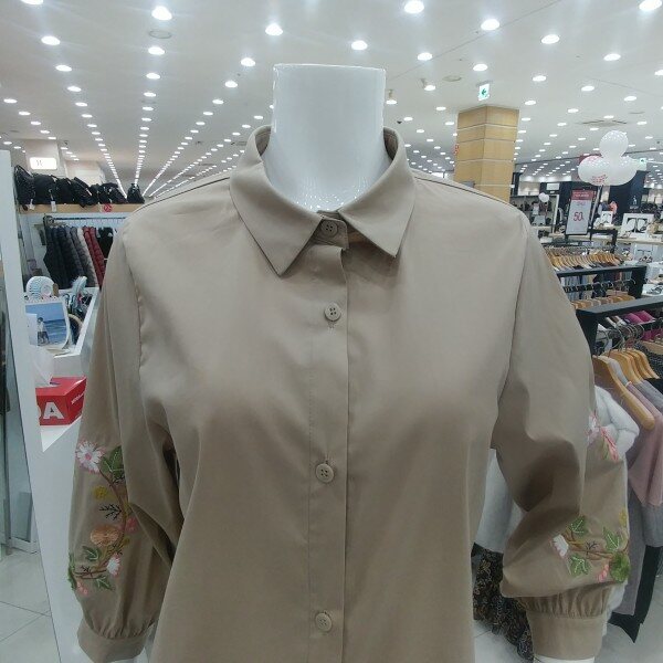 기본스타일셔츠에 소매부분에 자수로포인트를주어세련되보이며 멋스러움을강조함