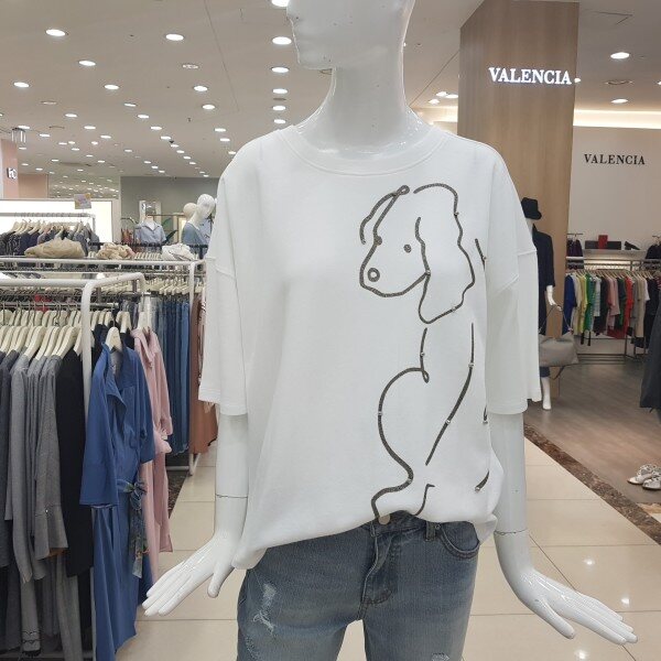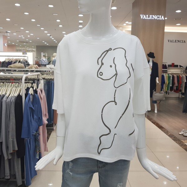 느낌좋은 루즈핏티셔츠.앞선 귀여운강이지와 큐빅이포인트로있어 단품으로도 밋밋하지않습니다~