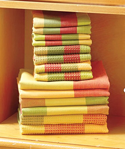 14 Pc Spice Woven Cotton Kitchen Plaid Check Towel & Dishcloth Sets