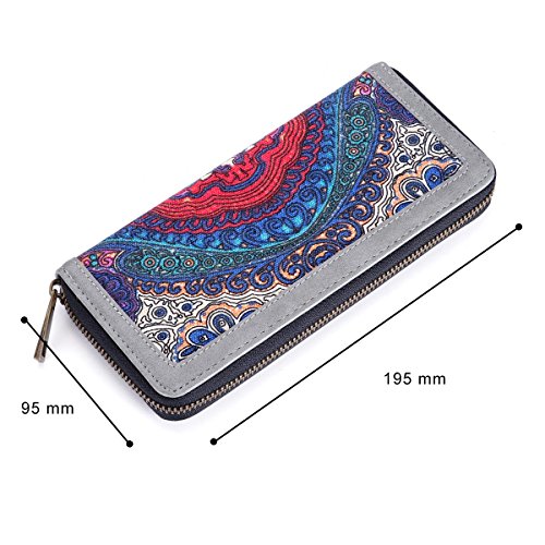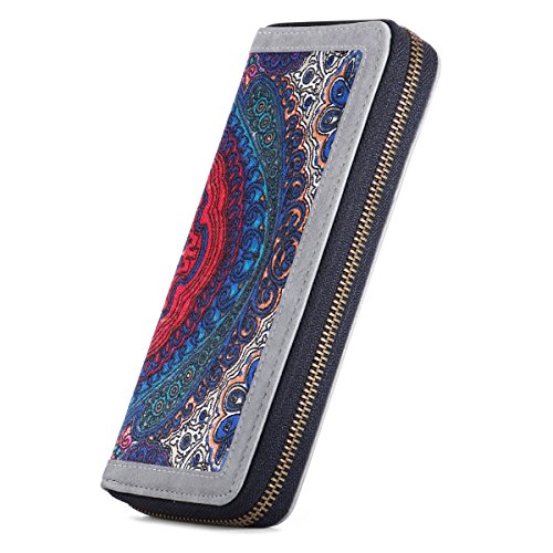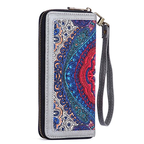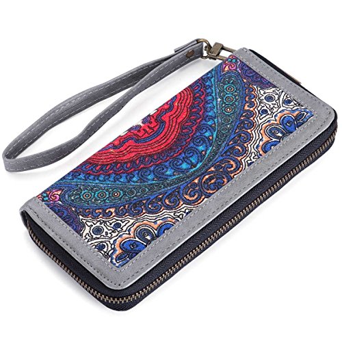 Women Canvas Wallet Large Capacity Card Holder Organizer Lady Zipper Purse with Wristlet for Card, Cellphone, Coin, Cash