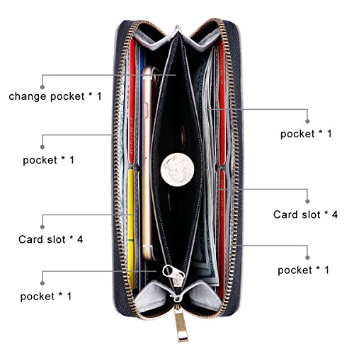 - LARGE CAPACITY - 8 credit card slots can hold your ID card, business cards, credit cards. 4 bill compartments can hold cellphone, cash or bills and a zipper pocket in the middle for coins, invoice or receipts, keep your belongings well organized and tidy.