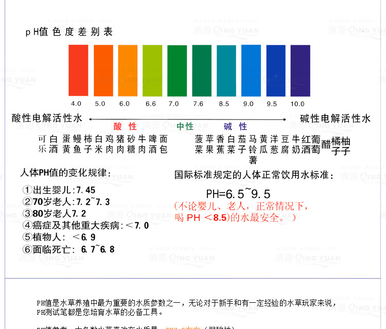 PH value of 7 is neutral, acidic below 7, greater than 7 is less than 8.5 is alkaline, above 9.5 is strongly alkaline.