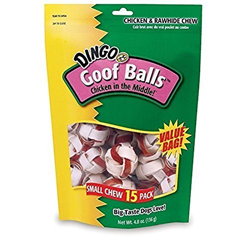 -. Feature : 3 PACK / Tasty chicken jerky wrapped in rawhide / Irresistible chew that's fun and tasty / Each value bag contains 15 Goof Balls / Chicken & Rawhide chew