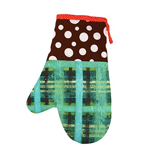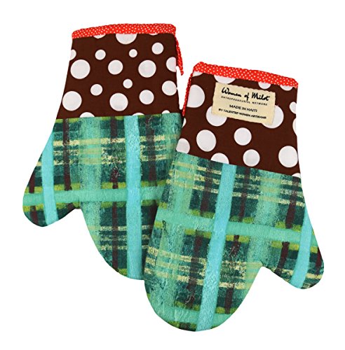Okap Oven Mitt Set Of 2 - Green And Brown Tones With Polka Dots - Hand Made Fair Trade From Haiti