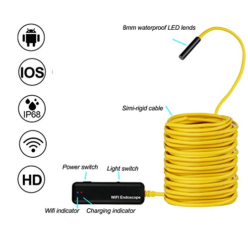 Upgraded 10M WiFi Endoscope: The Upgraded cable is rigid, anti-shake when u take a photo or do inspection work. This cable can point directionally, you can shape it for different usage.