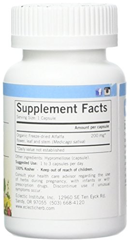 -. Feature : Offers detoxification support / Gives respiratory support / Contains no fillers, no additives, no air-drying, no extracts, simply whole herb in a capsule. / Alfalfa Extract in liquid form that includes organic fresh alfalfa (Medicago sativa) leaf, organic grain-free alcohol and filtered water / Whole, Raw, Fresh-Freeze-dried single herb. The herb is plucked fresh from a blossoming garden