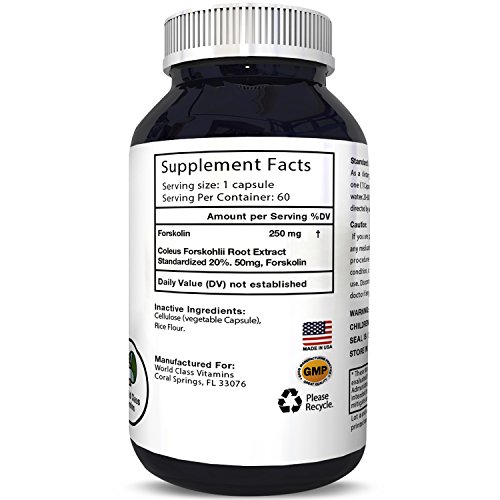 Give your metabolism a buzz from the inside out: supercharge your cells with Forskolin! Forskolin is an age-old supplement used for vitality and heart strength in the Ayurvedic tradition. Nowadays, it's available as a pure, potent capsule supplement good for weight loss support and: -Burning Fat -Increasing Metabolism -Whittling your Waist -Melting Belly Fat -Gaining Lean Mass -Lowering Blood Pressure The Coleus Forskohlii root contains bioactive substances that increase the enzymatic levels of cellular adenosine monophosphate (cAMP.) This multitasking substance stimulates the body's cells to improve metabolism. Our veggie caps are suitable for vegetarians, and are the perfect addition to a healthy diet and exercise routine. We only use the purest, highest quality ingredients in our wholesome supplements. We guarantee your 100% satisfaction, and stand behind our products. Please don't hesitate to reach out to us and let us know how our natural Forskolin has enhanced your life. Burn fat, feel better and achieve your goals!Feature