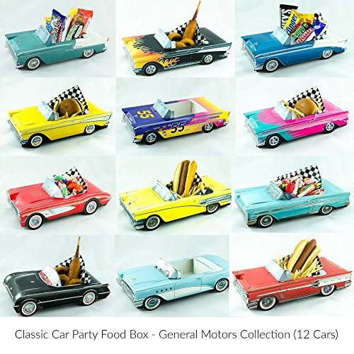 -. Feature : The ultimate GM Classic Collection in a 12 Car Set / Cardboard Replica of 50's & 60's Classic Cars Make Great Addition to Party or Event / Free Waxed Paper Food Liners Included in Every Set for Every Car (Food/Candy is not included) / Can be used as Food Container, Candy holder, Centerpiece, Party Favors / Easy to Assemble, They Come in One Piece with Easy Instructions on the back of each Car