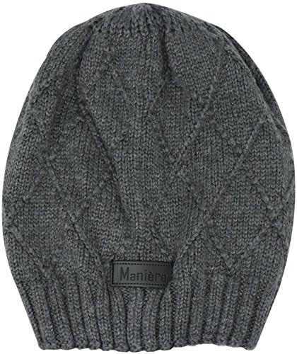 (Maniere)/Accessories/Hats/DIRECT FROM USA/Maniere Unisex Child Wool Blend Diamond Pattern Knit Beanie Hat with Snap for Pompom
