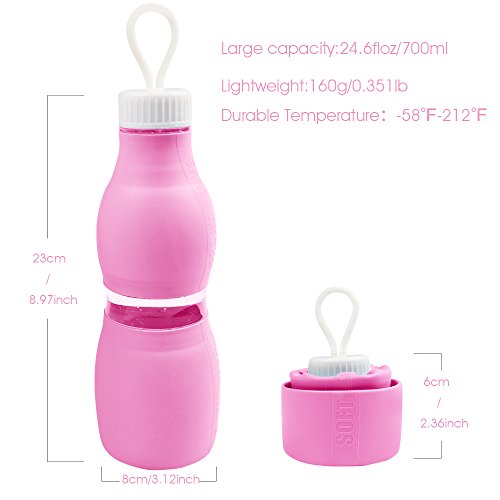DURABLE & UNBREAKABLE: Silicone water bottles are not easy to damage, unlike other glass or plastic bottle, and also can be put into dishwasher to clean. Withstand temperatures from -58℉ to 212℉.