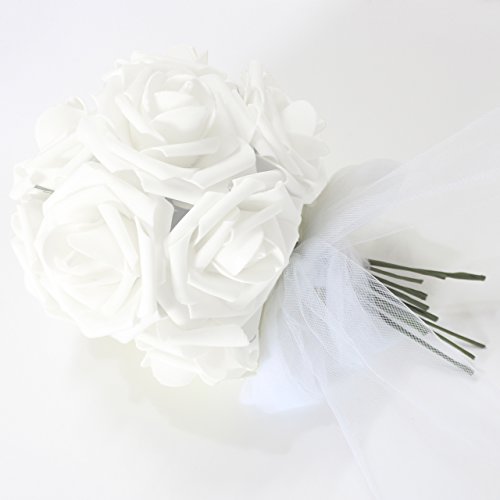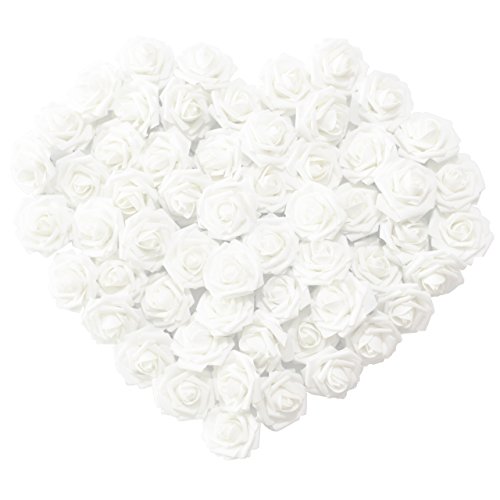 Artificial Flowers 50pcs Real Looking Artificial Roses for Wedding Bouquets Centerpieces Bridal Party Baby Shower Decorations DIY- White