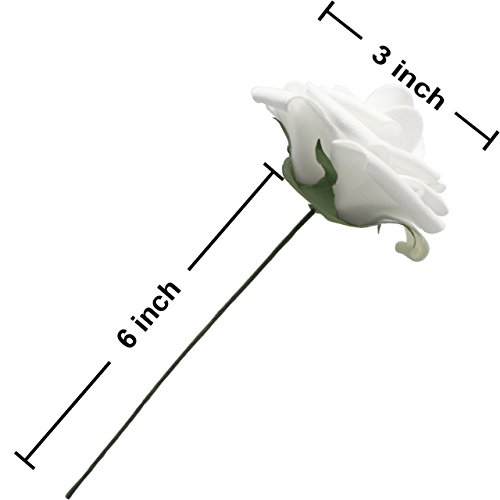 PERFECT DECORATION SIZE- each package has 50 pieces fake rose. Each rose head is aprrox. 3 inches, the stem is about 6 inches long