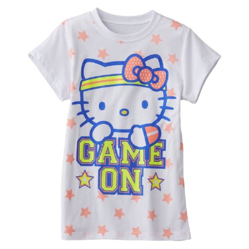 Hello Kitty® Girl's "Game On" Tee From the Manufacturer: Featuring a Hello Kitty graphic saying "Game On", this sporty shirt will give her first day a fashionable boost. In white.