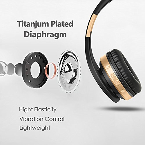 Built to Stay Comfort: Padding with soft memory foam, the supple ear pads is wrapped by soft leather which simulates human skin texture. This lightweight bluetooth earphone (only 7.37oz) also reduces pressure on your head and ears. Retractable headband can help you find the most comfortable wearing way.