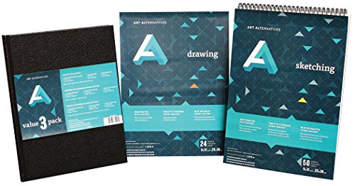 - All three drawing pads feature bright white acid-free paper for sketching, drawing, pastels, and pen and ink