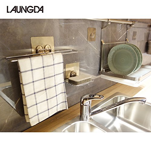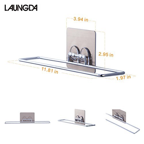 Towel Rack Laungda Towel Bar Holder Wall Mount Self Adhesive Towel Rail for Bathroom Shower Kitchen RV Caravan Chrome Dorm Pack of 1