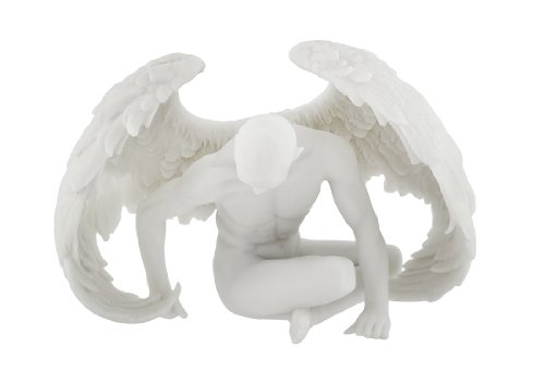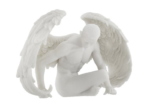 Nude Winged Male Angel Sitting Marble Finish Statue