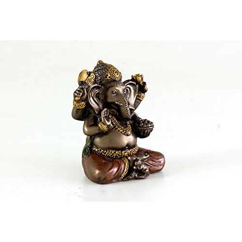 Top Collection Mini 2" Ganesh Hindu Elephant God of Success. Good Protection. Bronze Powder Mixed with Resin - Bronze Finish with Color Accents.