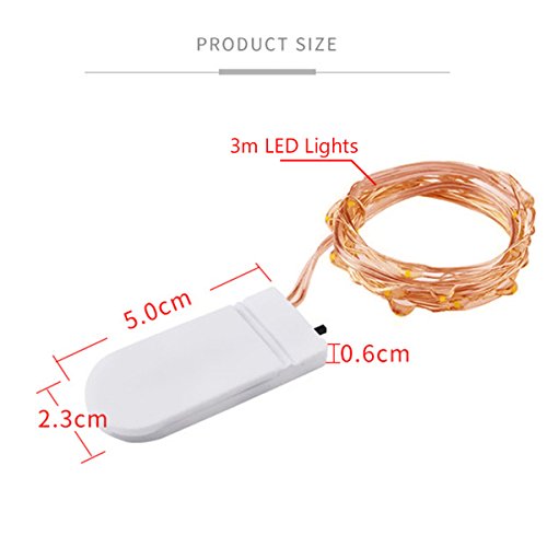 Hogoo Decor Warm white Lights,3M/10ft, Copper Wired, 30 LED Bulbs Indoor Outdoor Decorations, Button Battery Powered Batteries Included Pack of 6