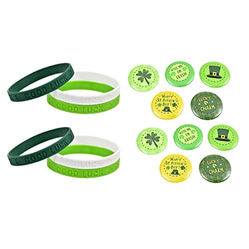 St Patrick's Day Button Pins and Bracelets Set of 10 Green Accessories Good Luck Lucky Charm Kiss Me I'm Irish