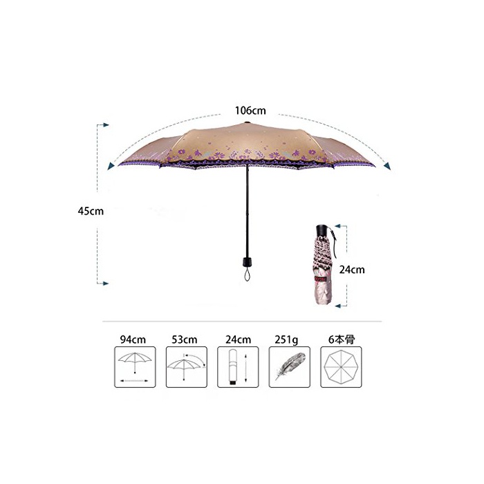 MIGOBI 접는산 수동 개폐식 양산 발수 가공 방풍 경량 여행정미인 레이스 Flowers umbrella 엄브렐러 UV컷 서늘 미니형 선물8651DP