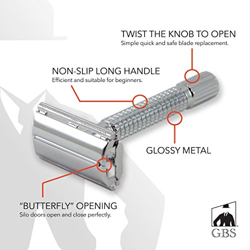GBS Men's Deluxe Dopp Travel Shaving Set - Comes with Travel Shaving Brush, Shaving Bowl, Soap, Butterfly Double Edge Safety Razor with Head Sleeve...