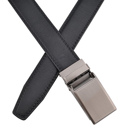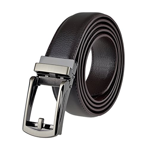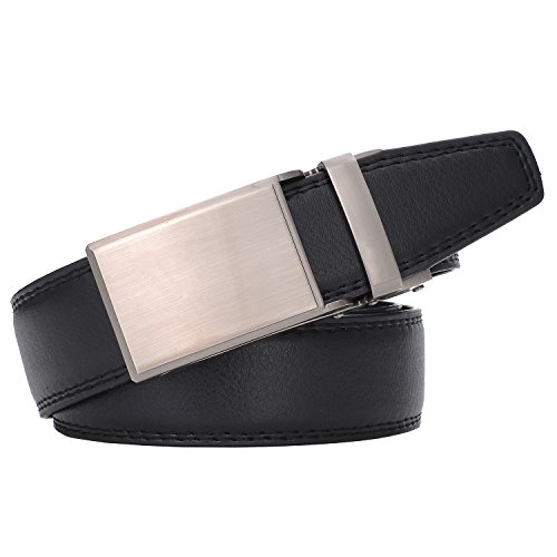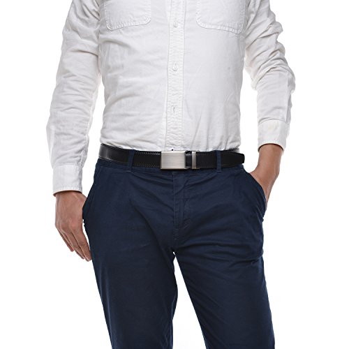 ※Perfect Fit※ The men dress belt suit up to size 50, can be trimmed to any size easily. Belt with 34-position (4 per inch) ratchet track system to get perfect fit wearing experience.