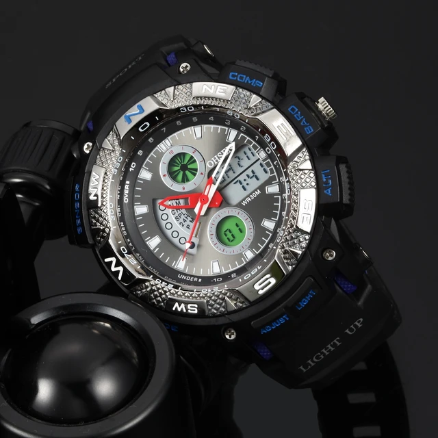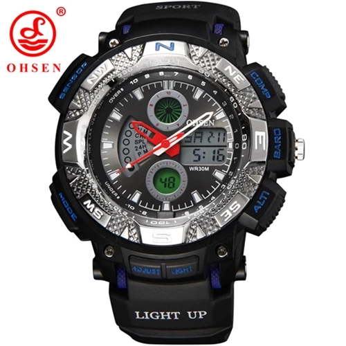 | [해외]Ohsen 패션 시계 남성 g 스타일 방수 led 스포츠 군사 시계 충격 남성 아날로그 쿼츠 디지털 시계 relogio masculino |